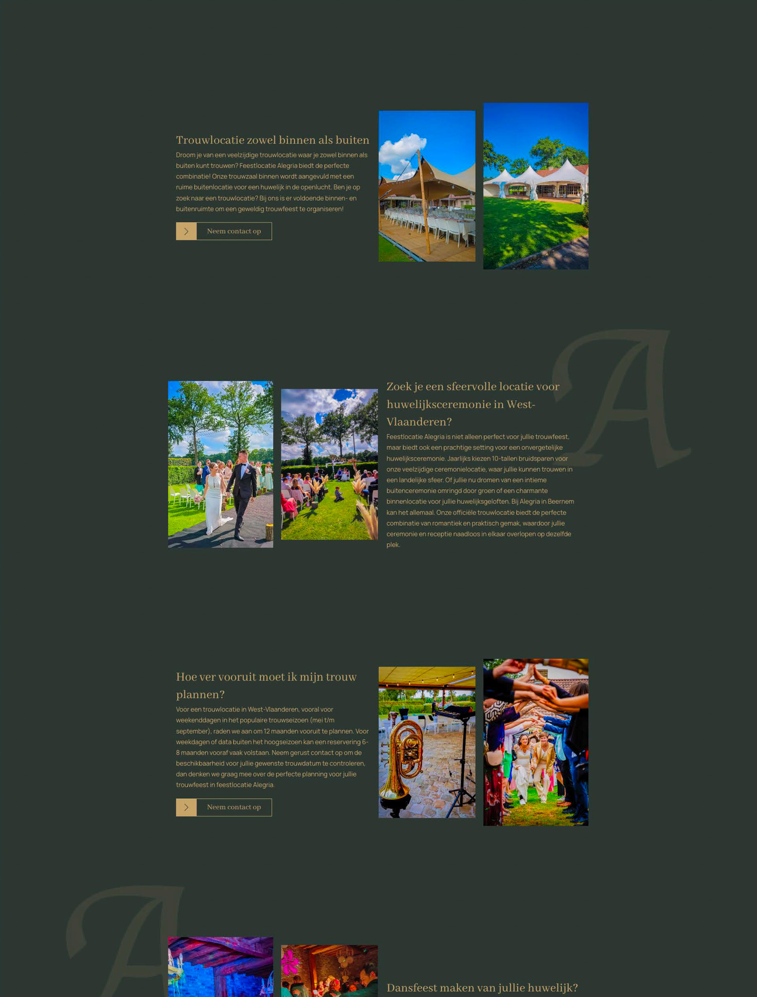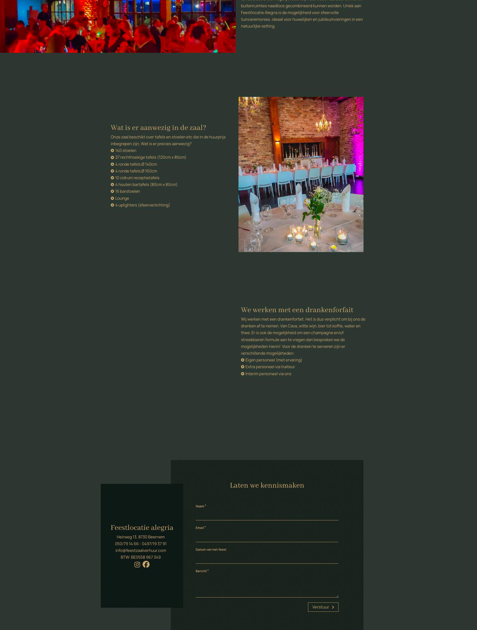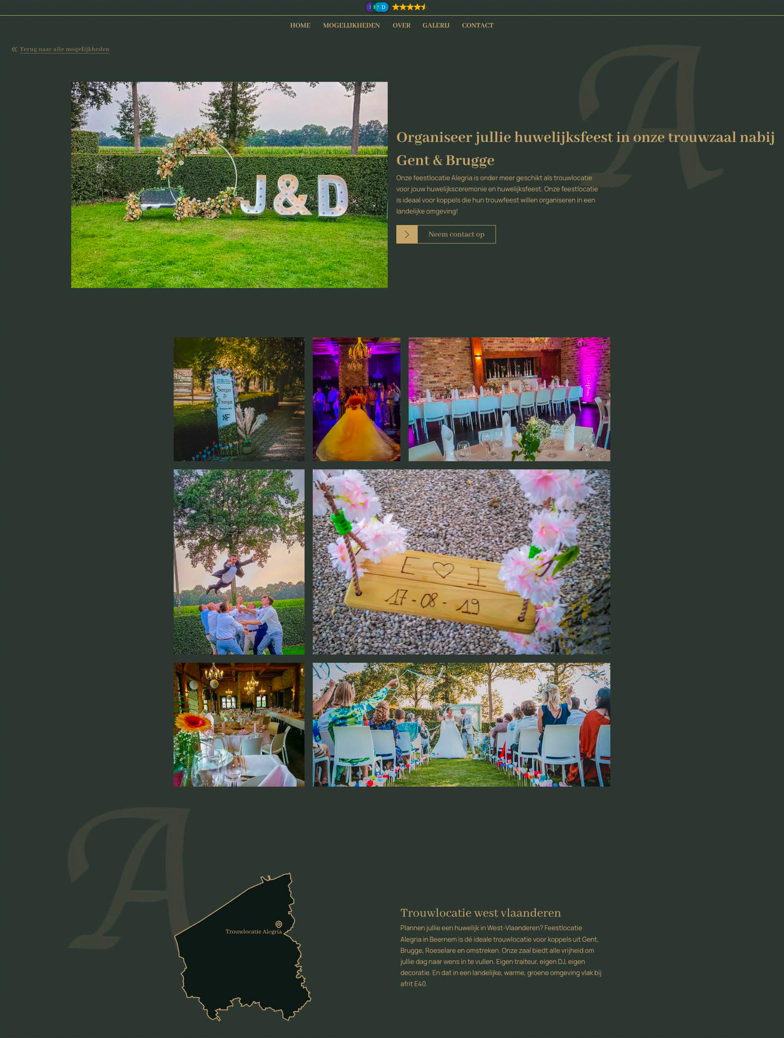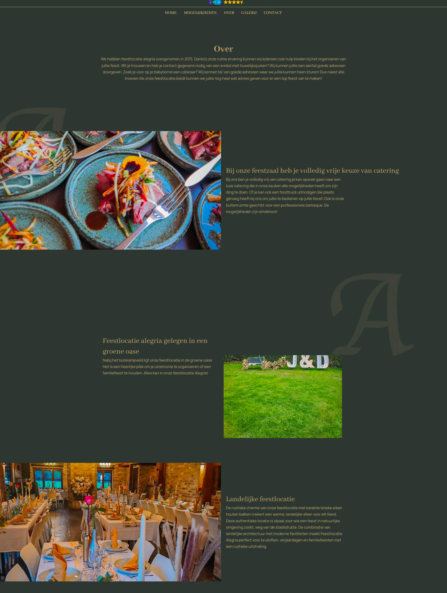 Van een verouderde website een echte lead machine maken. Dat is ons gelukt bij de website van feestlocatie Alegria. Na het verzamelen van meer foto’s en het onderzoeken van de keywords waar we op willen scoren. Hebben we de oude website volledig vernieuwd met als resultaat dat de website nu heel wat klanten binnen brengt!